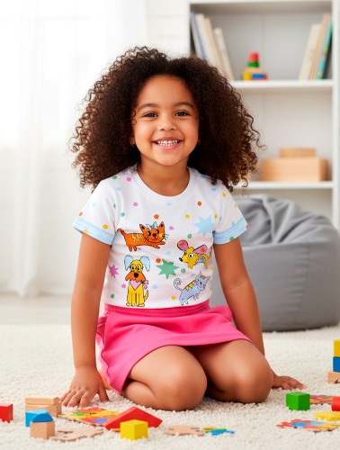 Camiseta Infantil Estampa Gatinha Verde - Tam. 2 a 10 anos