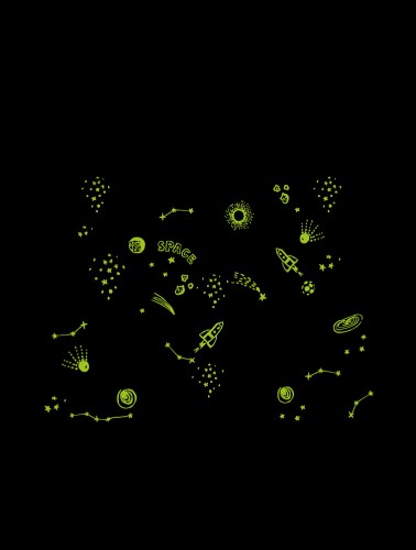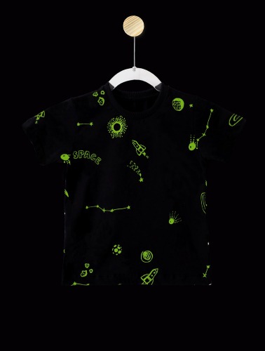 Aplicação de tinta serigráfica especial que absorve luz ambiente e quando a luz apaga a tinta fica acesa em um ton esverdeado, a durabilidade depende da quantidade de tempo exposta à luz comum.