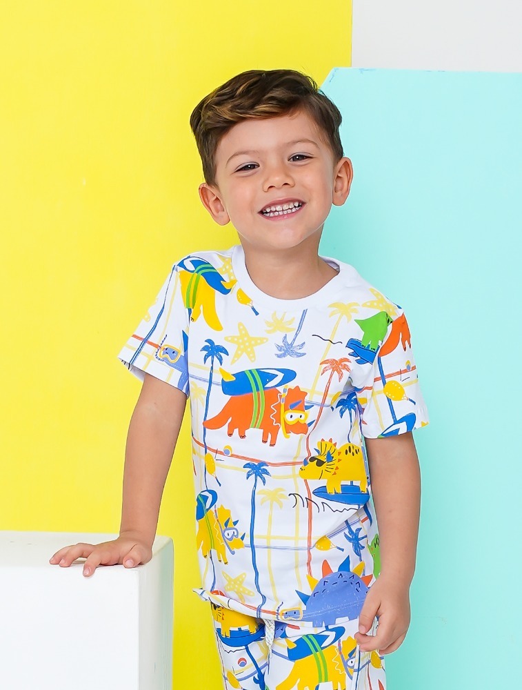CAMISETA - DINOS NA PRAIA - BRANCO
