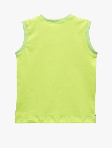 Decote redondo com ribana canelada e viés.